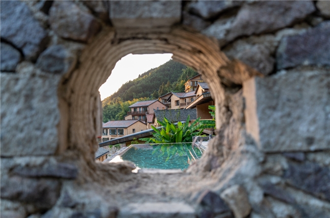 作为浙江省最大的民宿综合体,原舍揽树的规模足以承载多样的生活场景。18000平方米的占地范围,由150000块本土石头和夯土精心堆砌而成,166间民宿沿山势错落分布,却没有破坏自然的肌理。