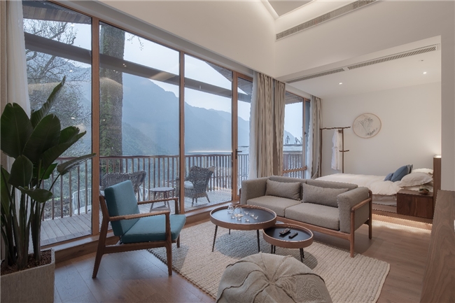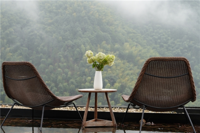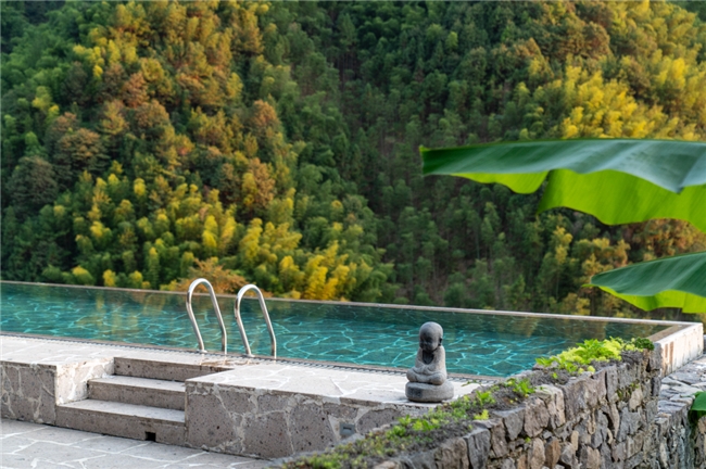 公共空间的设计同样匠心独运,庭院、酒吧、无边泳池等区域都巧妙地延伸向自然,打破了室内与室外的界限。在庭院里,草木繁盛,花香四溢,你可以搬一把躺椅,在树荫下静静阅读,或是与三五好友闲谈;在酒吧的露台,你可以端着一杯美酒,俯瞰着远处的云海,感受山风拂面的惬意;而无边泳池更是点睛之笔,池水与远处的云海连成一片,仿佛在云端游泳,随手一拍都是刷爆朋友圈的美景。