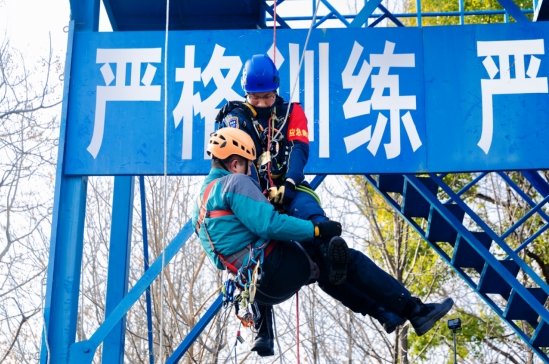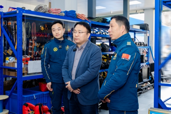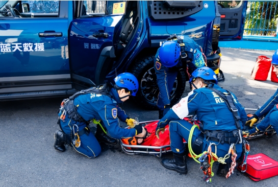 基地参观结束后,蓝天救援队队员现场开展专业救援演练,聚焦绳索救援、人员紧急医疗救助等核心场景,展现了规范的操作流程、高效的团队协同与过硬的专业素养,充分践行了“严格训练、严格要求”的管理理念。演练过程中,队员们快速响应、精准操作,将应急救援的专业性与紧迫性直观呈现。在场队员的专业演练,也为后续产品赋能救援的合作方向提供了实践参考。